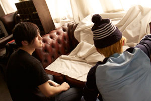 丈上げ作業を、強いられる コヤナギ(最近ブリーチしたが、まだ完成してない。)と、モヒカンが伸びたアンドー。